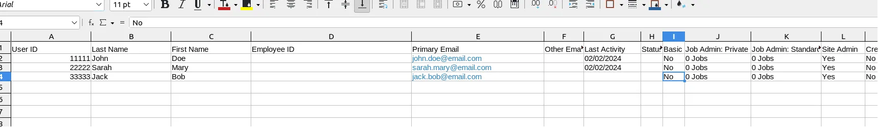 - Open the excel, you should see users that are added to the team within the Greenhouse app. Copy the first user ID which should correspond to the admin account and paste it in the user ID field.