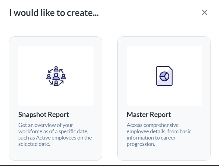 • Snapshot Report – Provides an overview of your workforce based on a specific date.