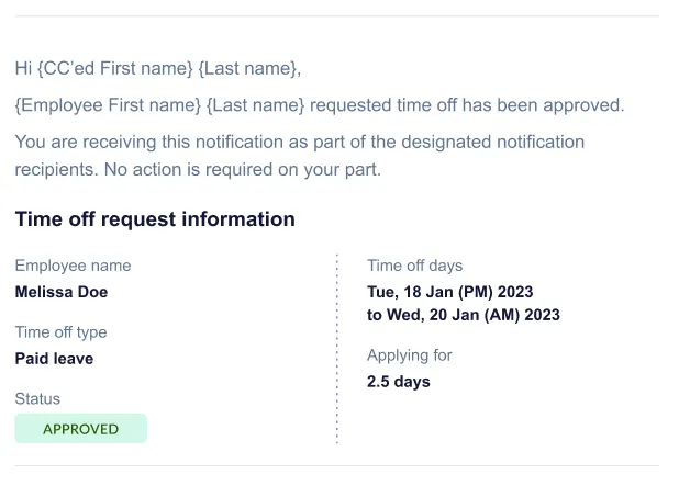 Admins now have the flexibility to configure additional notification recipients for time off requests.