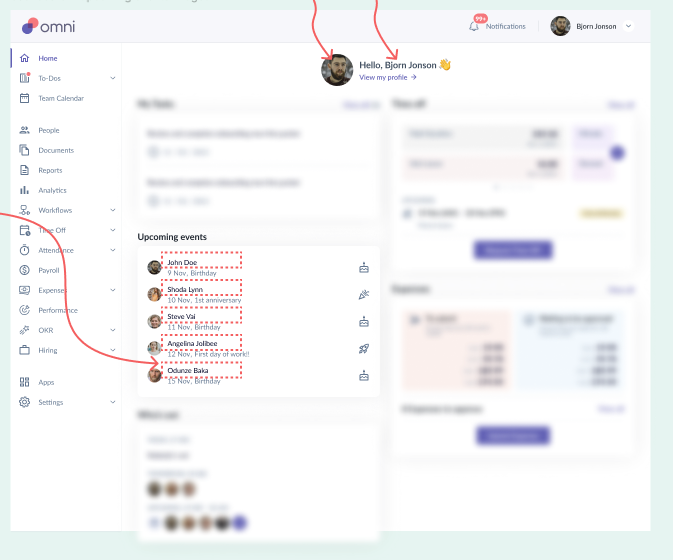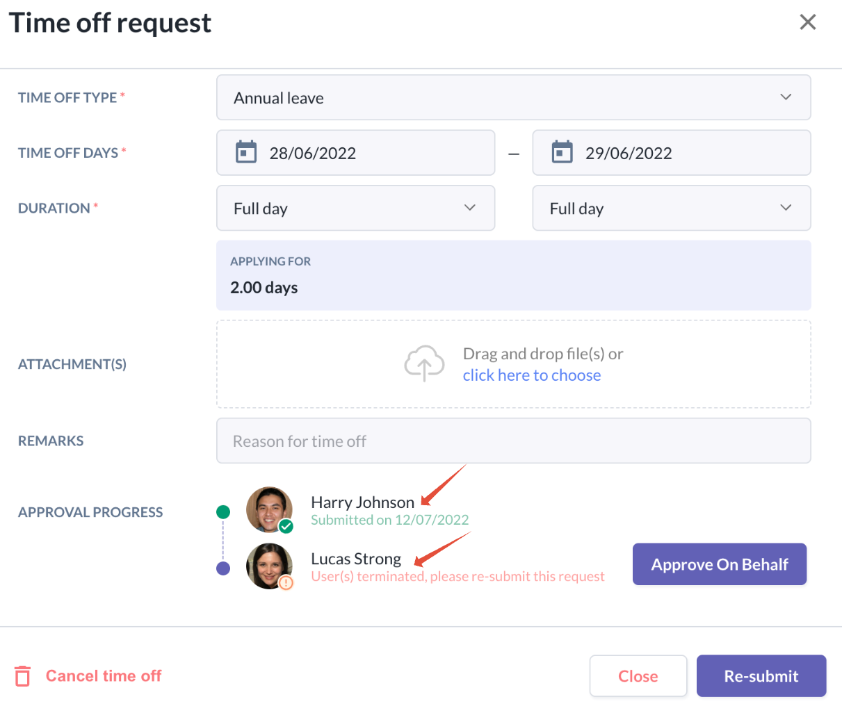 Employee profile > Time Off tab > Time Off events (list)