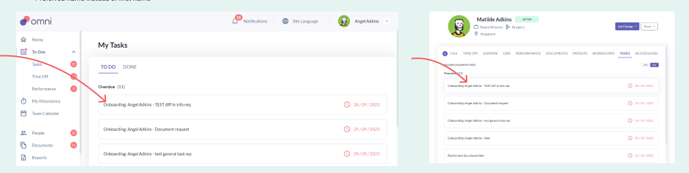 Employee Profile > Tasks
