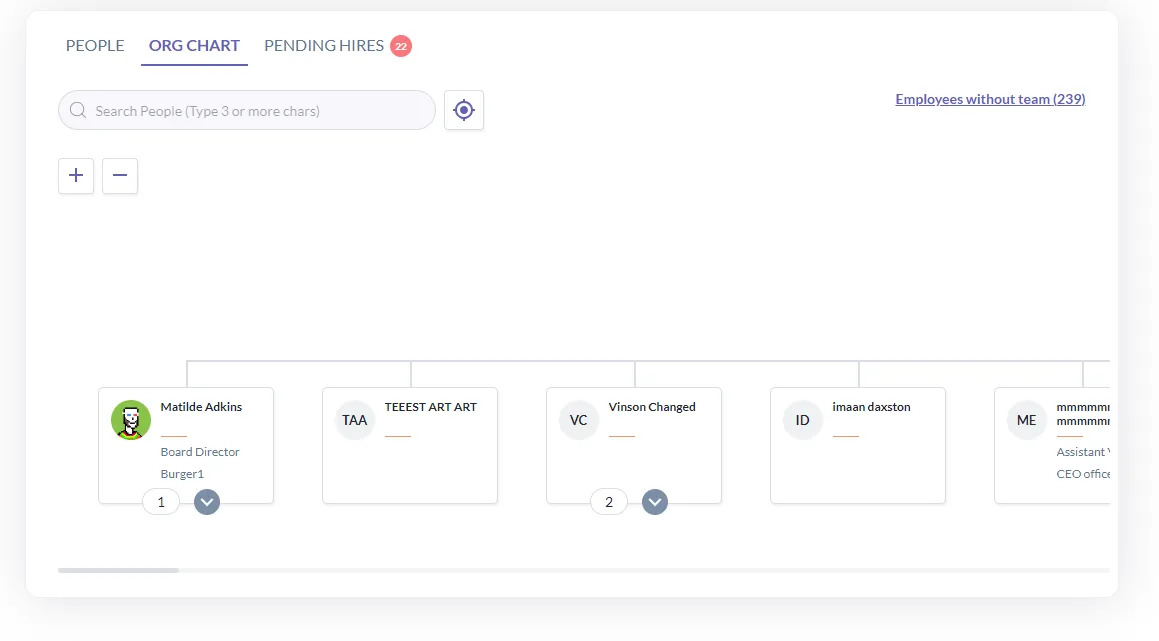 Searching for an employee in the organisation chart