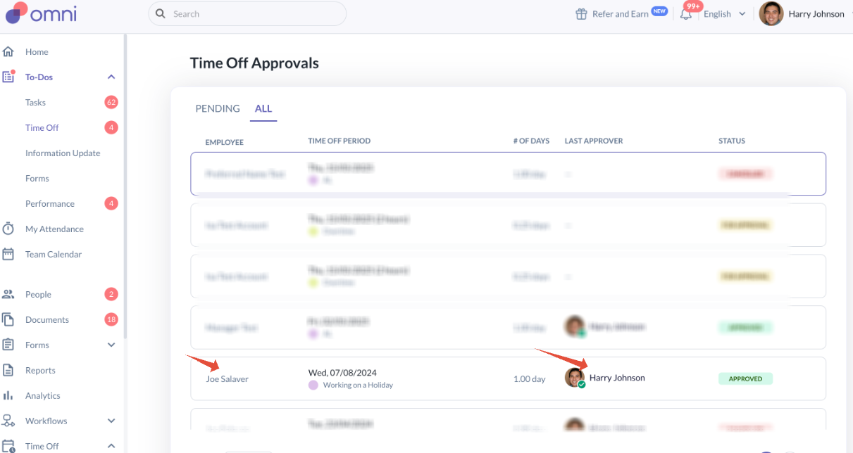 To-Dos > Time off (Pending & All tab)
