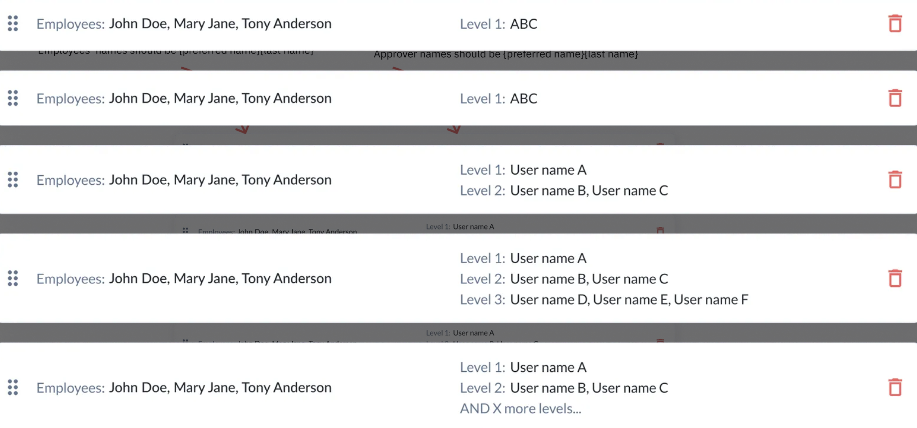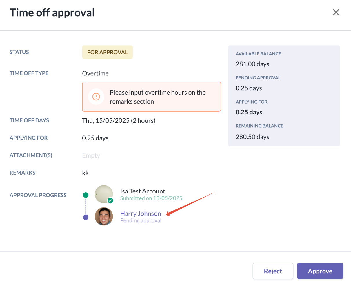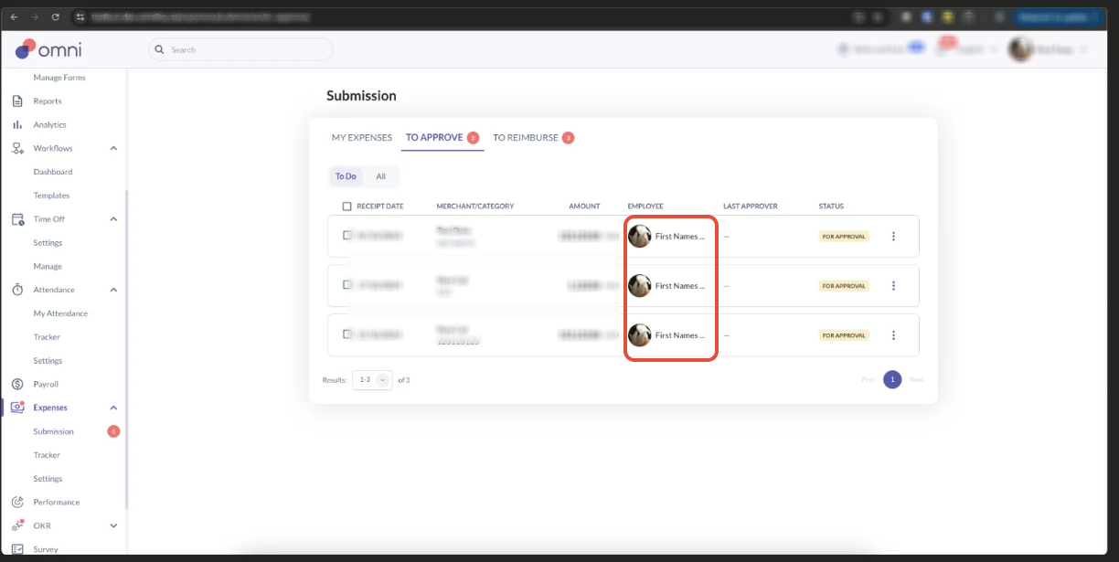 Employee and Approver display