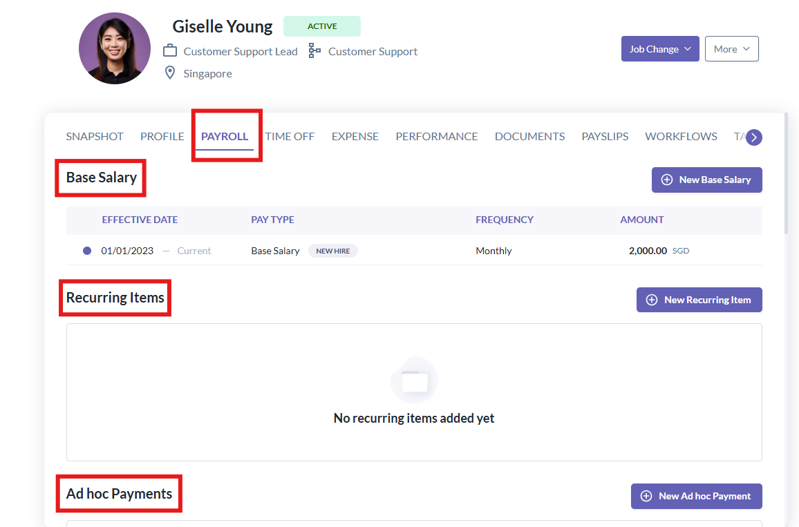 - If there are salary changes or additions such as recurring or ad-hoc income, update these in each employee's profile before creating a pay run.