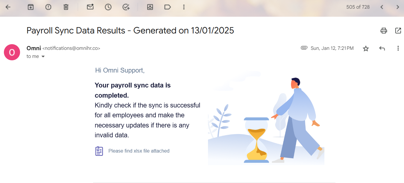 - Once syncing is complete, the authorized payroll user will receive a validation email. Ensure your primary email address is set correctly to receive this.