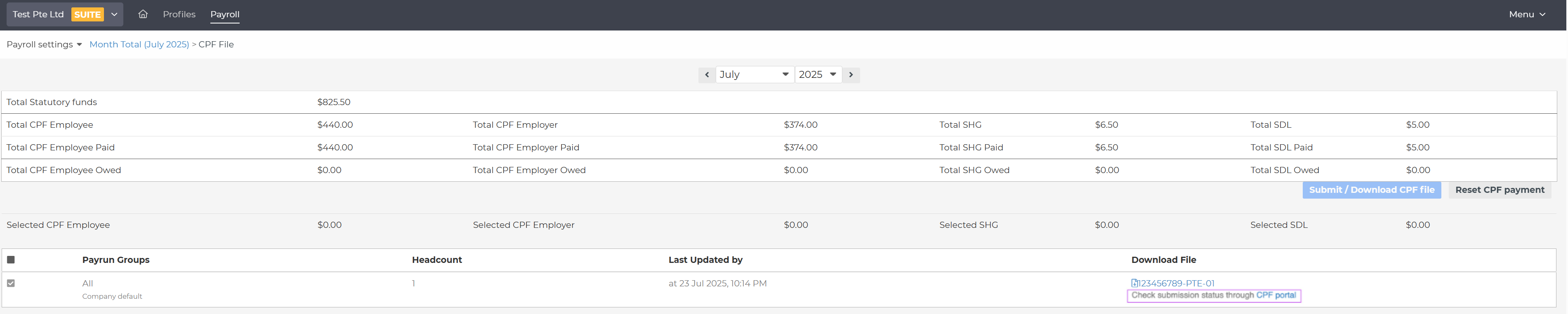 5) Once payment has been successfully made, the corresponding CPF submission in the payroll system will be blanked out to prevent duplicate submissions for the same payment batch.