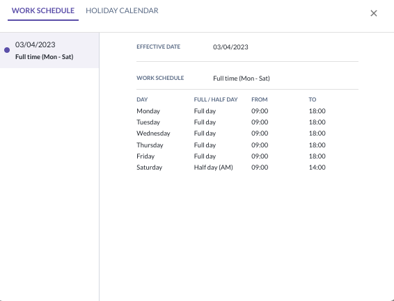 - Shows you what type of work schedule & holiday calendar has been assigned to yourself.