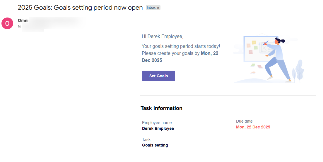 - When the goal setting period launches, participants will receive an email notification notifying them that the goal setting period is now open and they can set their goals.