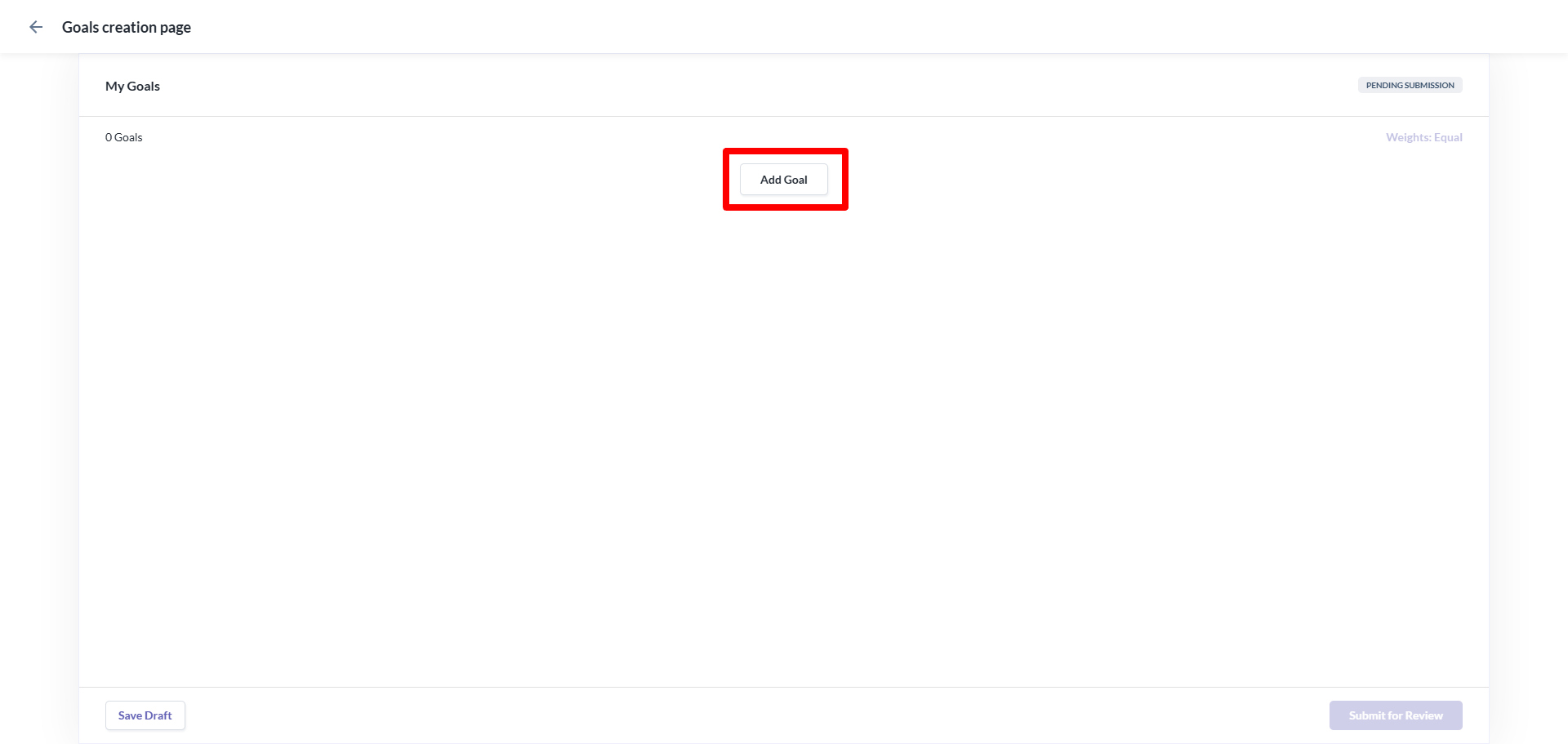 - Once you are done setting your goals and sub-goals, click on the Submit for Review button to submit.