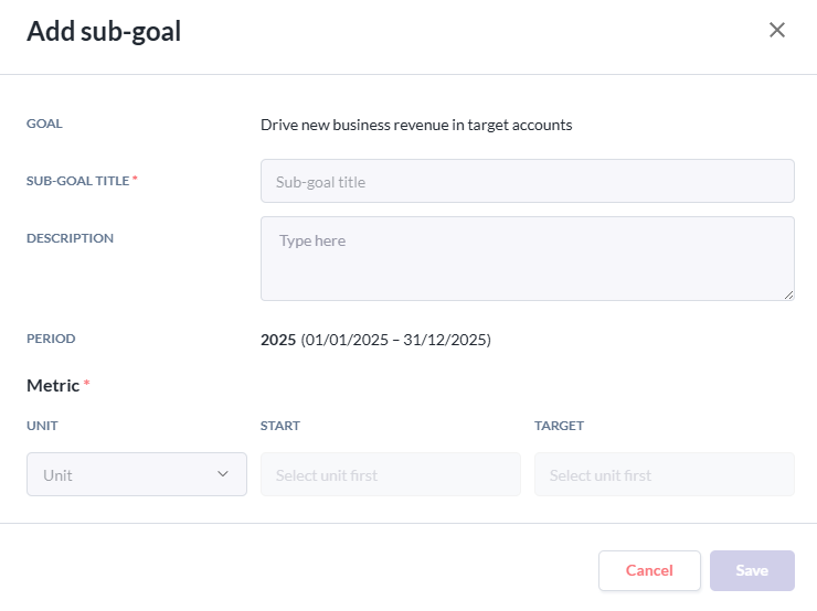 - Click on the Add Sub-Goal button. Fill the popup accordingly.
