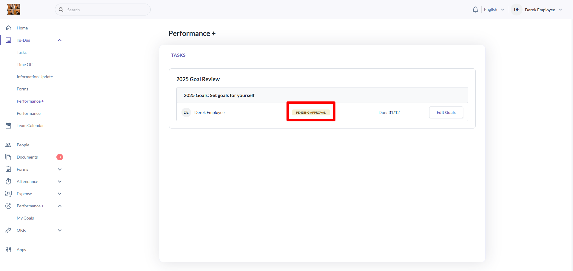 - The status of the goal setting task will now change to Pending Approval
