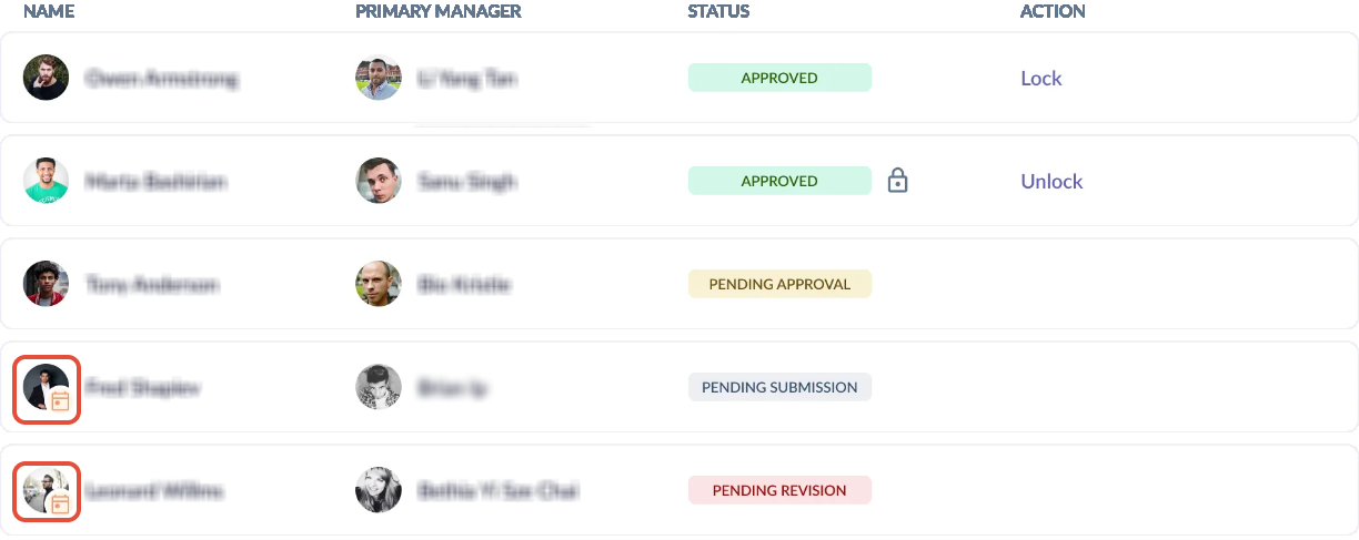 - A calendar badge will be visible next to selected participants with different timelines from the rest.