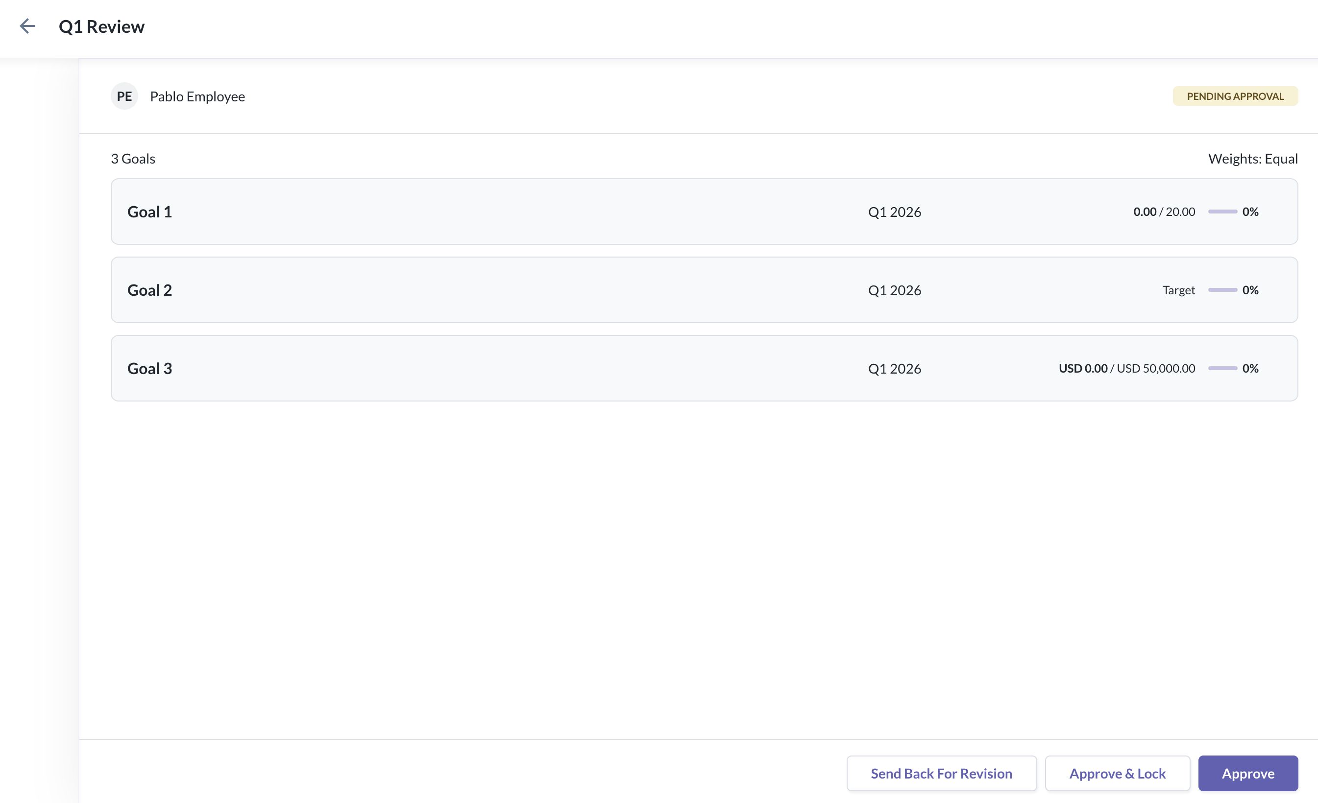 - Locking & Unlocking does not change the Goal status but only controls the edit permission for the Employee