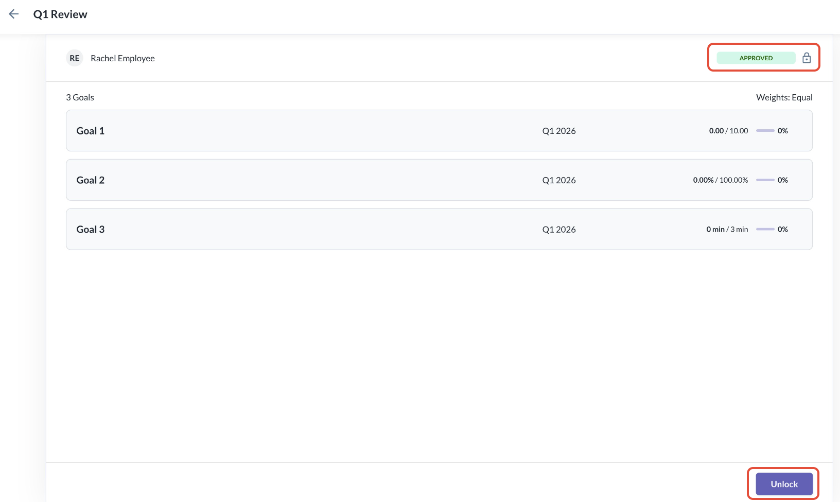 - If Manager's click Unlock, Employee's regain permission to edit their Goals