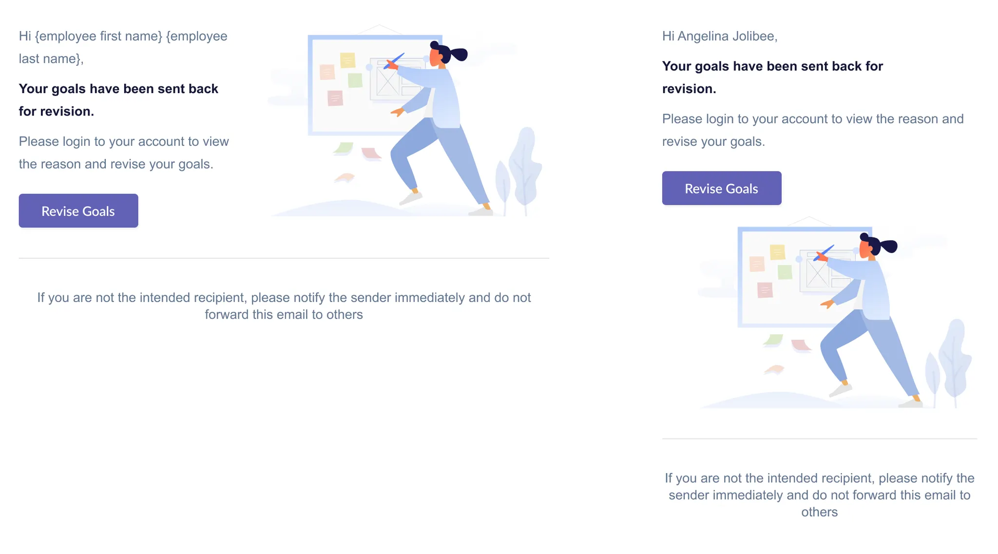 Employees receive notifications whenever a manager takes action on their submitted Goals