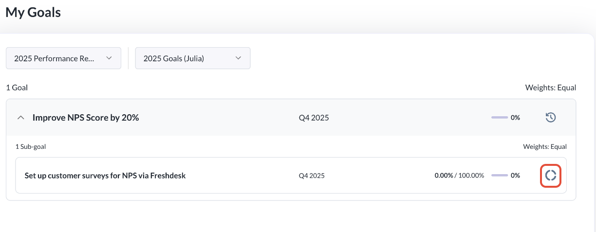 - Step 2: Click on the update progress icon on either the goal or sub-goal level