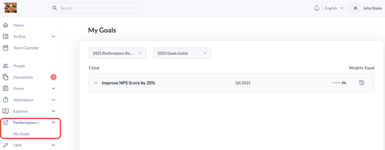 - Go to Performance+ > My Goals
