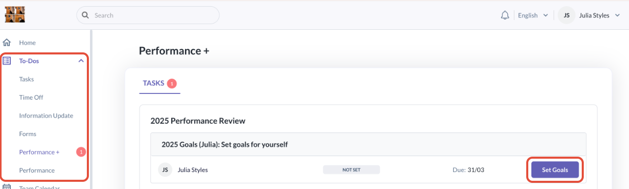 Step 1: Go to To Do > Performance+ > Tasks