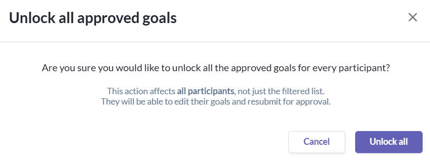 - Individual Lock/Unlock - Apply actions to a specific participant's approved goals.