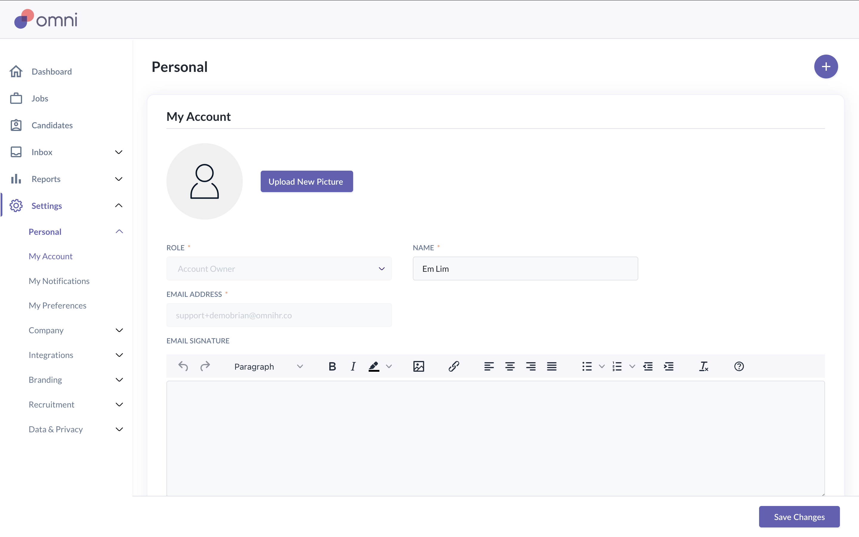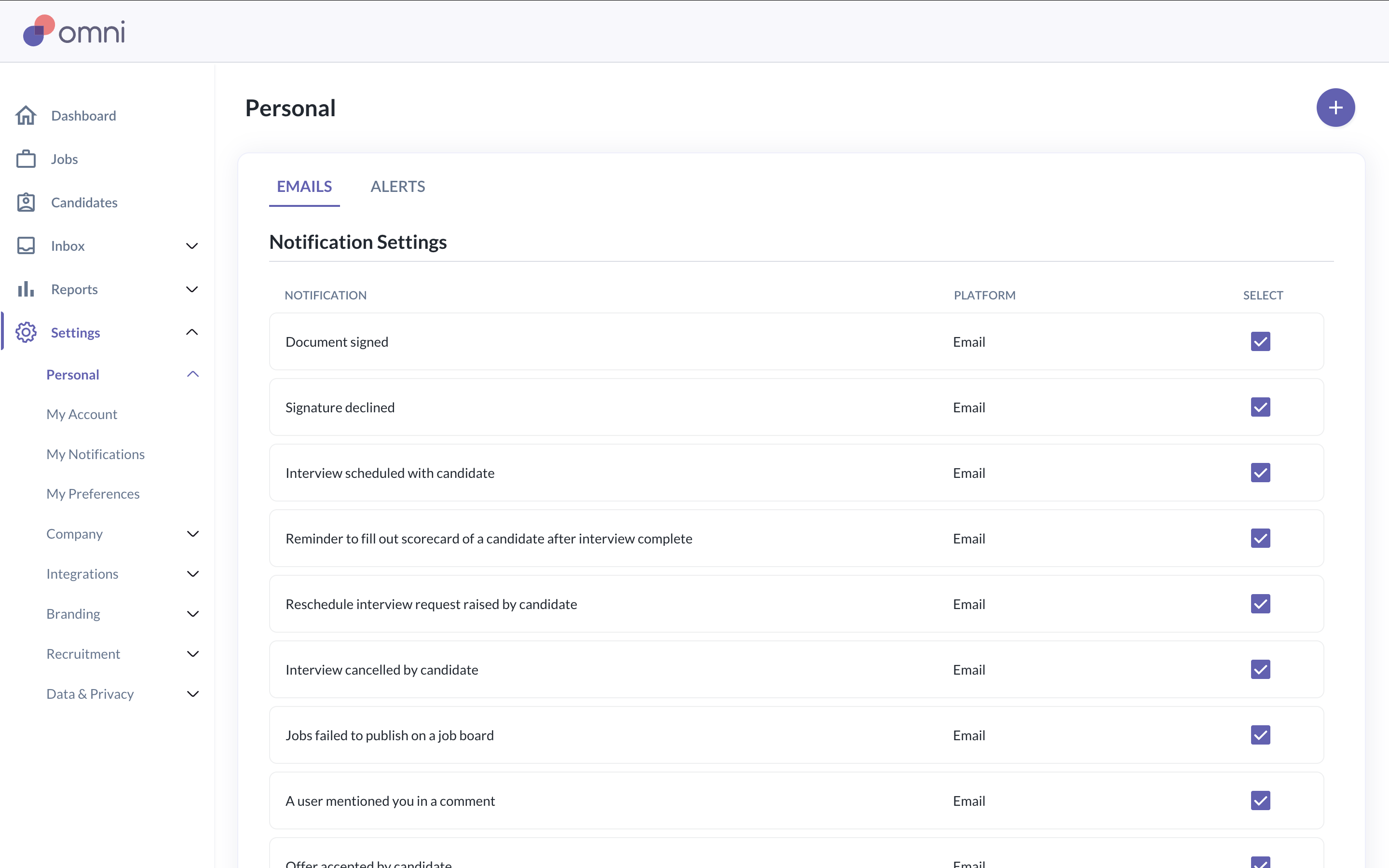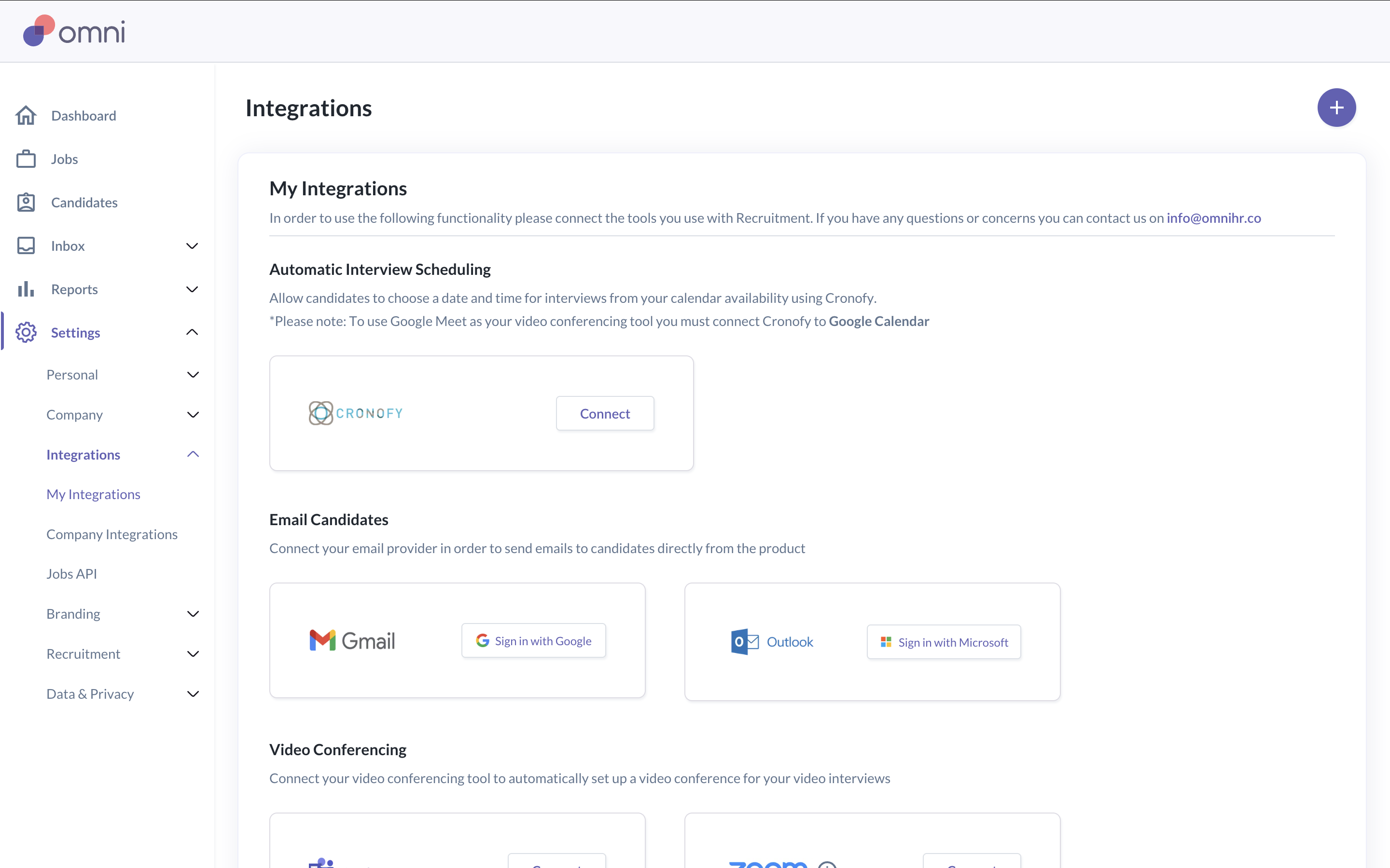 Connecting your work email allows Omni to send candidate emails using your email address.