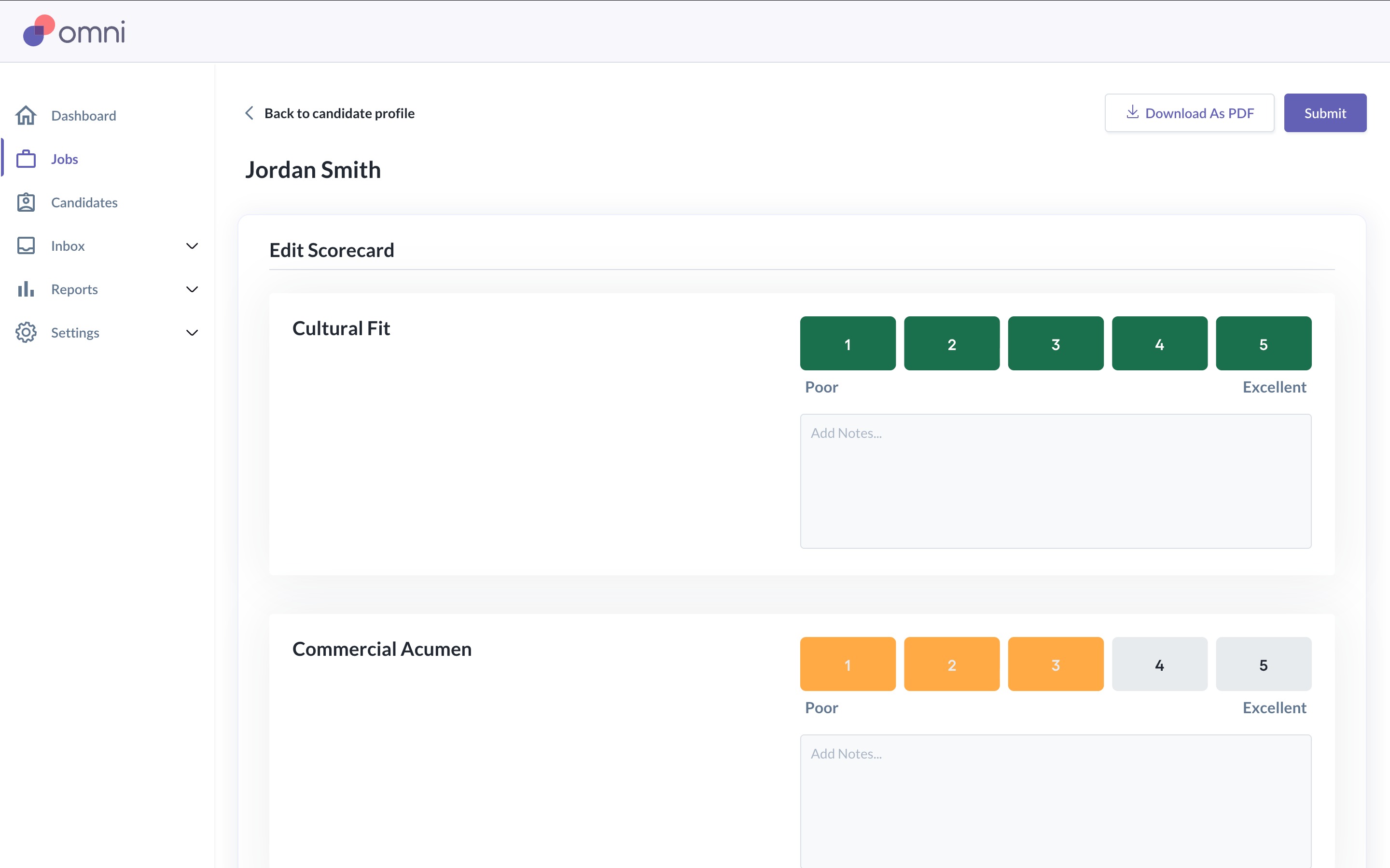 Interview feedback is collected using scorecards. Scorecards allow interviewers to: