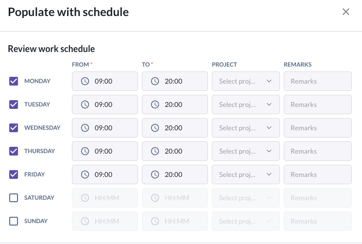 Step 2: Setup or Update the work schedule