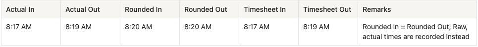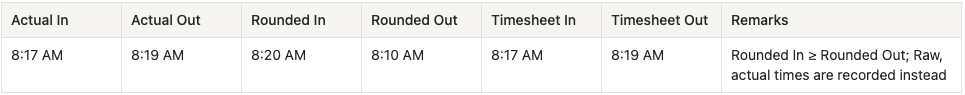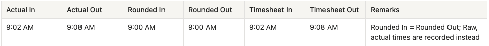 - If rounding settings exist, rounding will NOT apply (grace period settings always takes precedence) if clock time falls within grace period