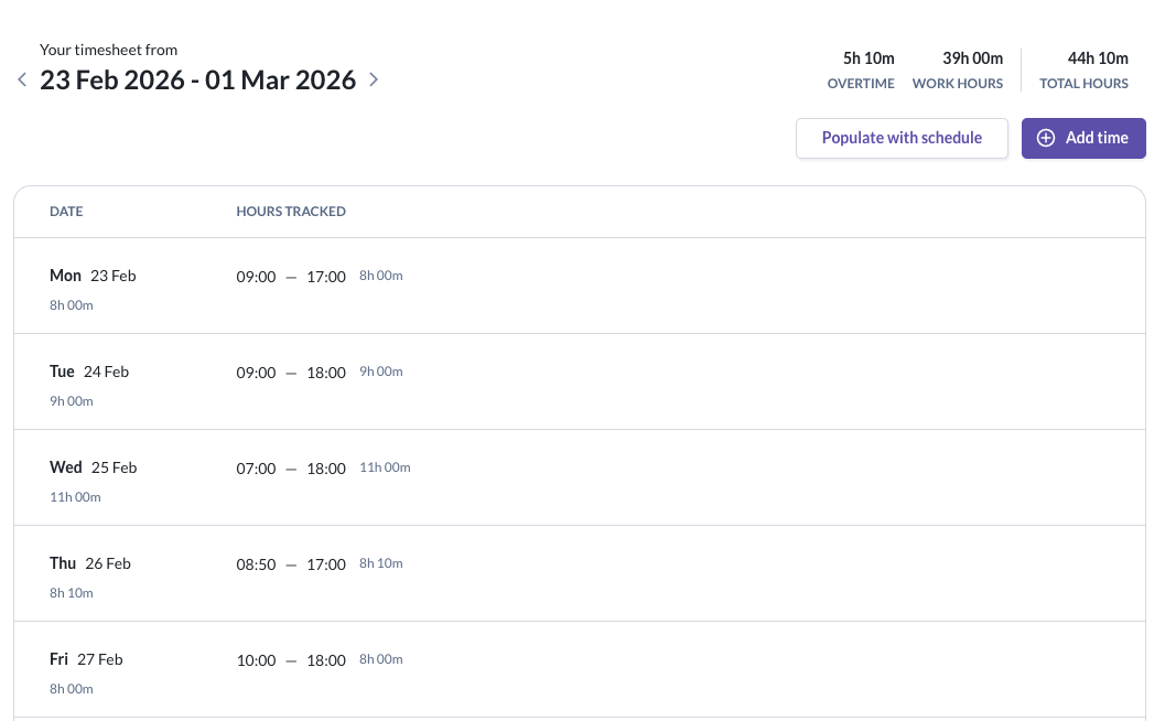 - Effective 1 Mar 2026, overtime will be calculated based on actual total hours worked - depending on the overtime policy settings configured;