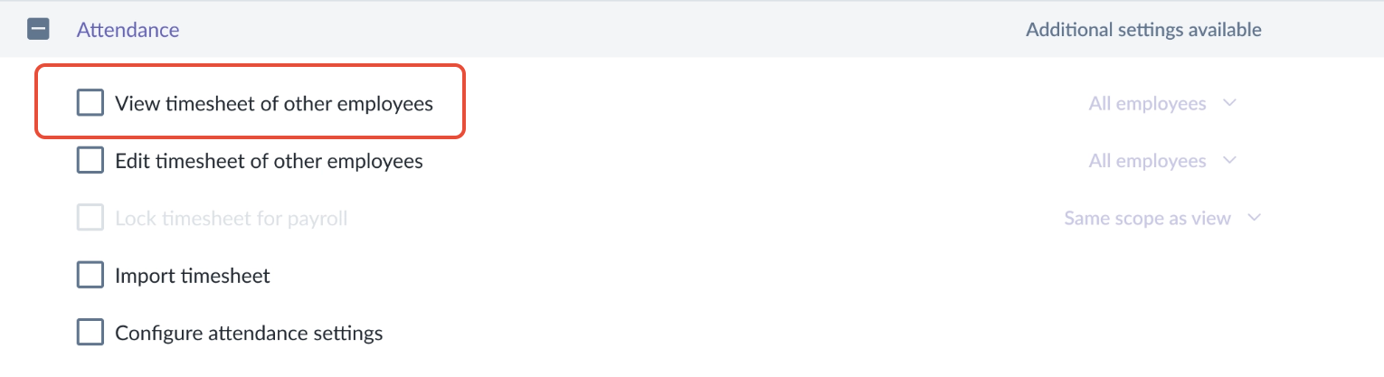 If “View timesheet of other employees” is not enabled, the lock permission will remain unavailable.