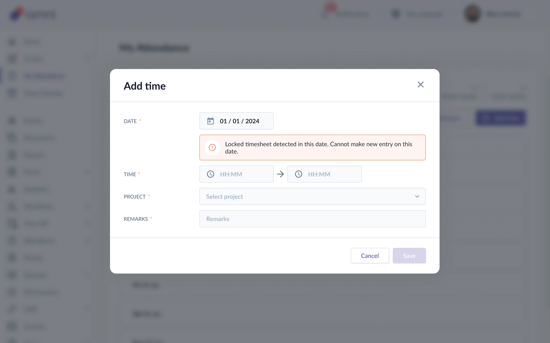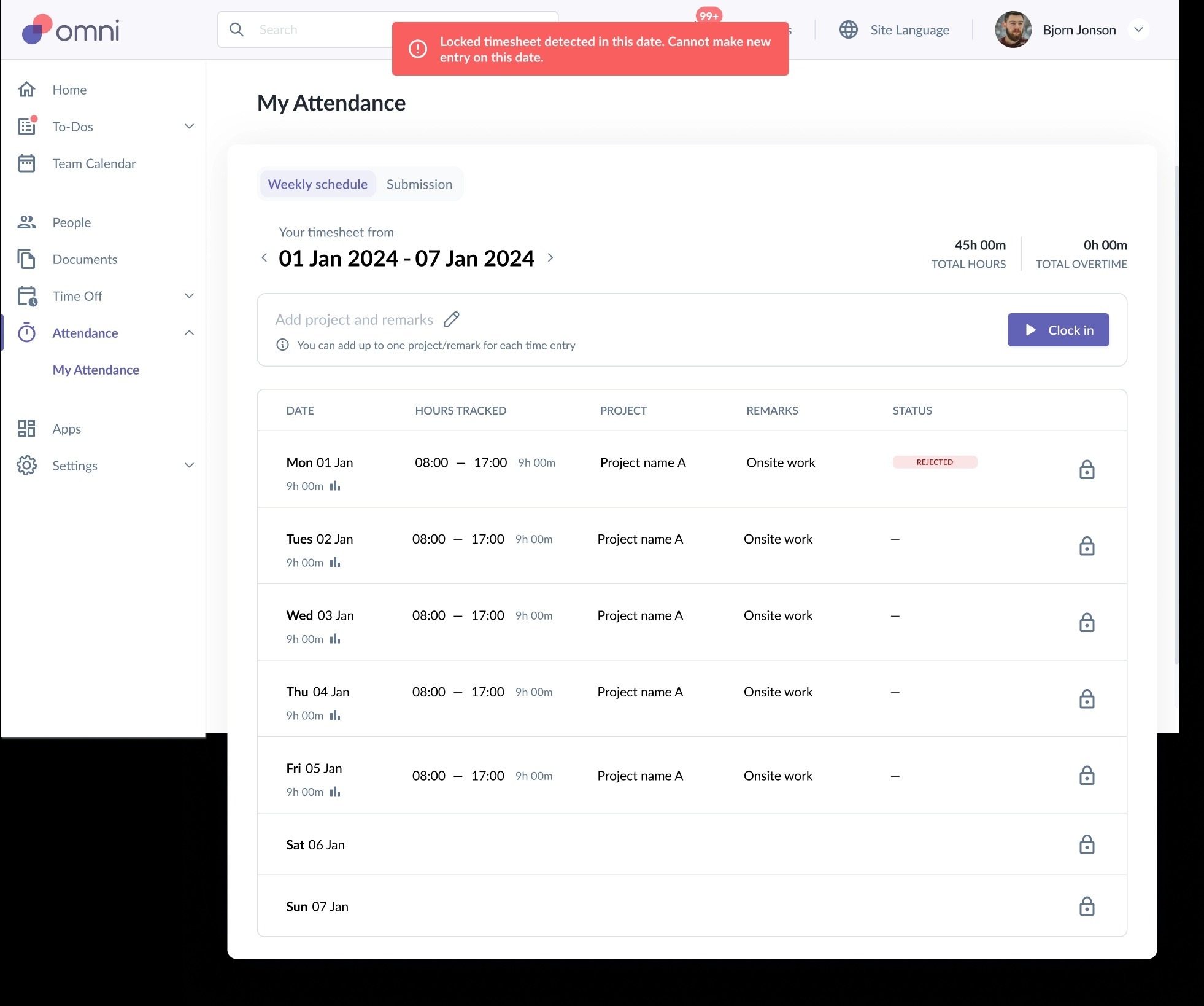 Cannot clock in on locked dates