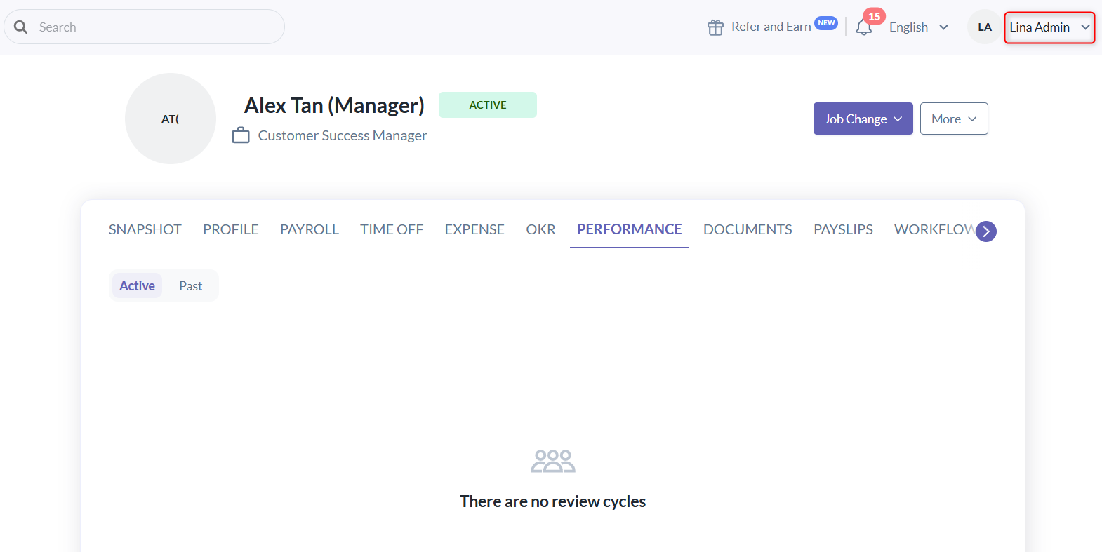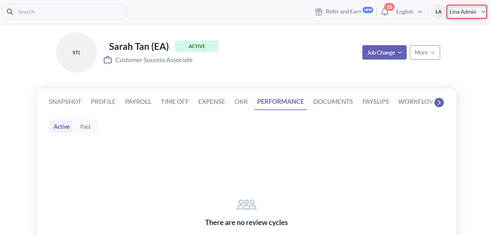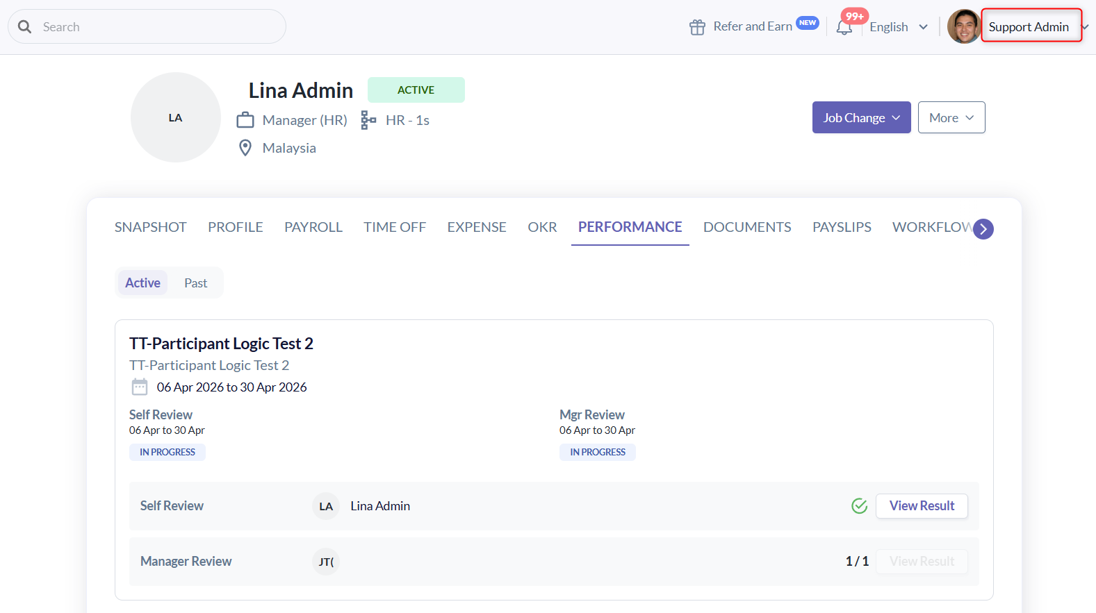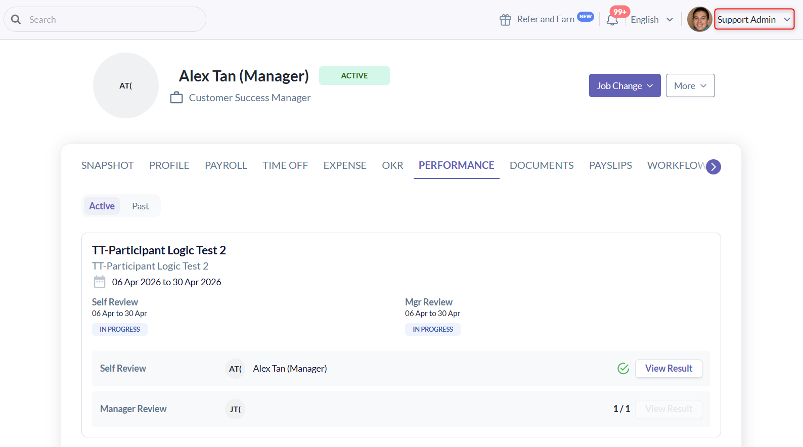 - Example: Support can see all performance results in the employee's profile performance tab