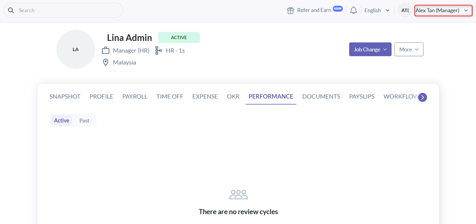 - Not involved: Users who are not part of the performance cycle at all, meaning they are neither reviewees nor reviewers.