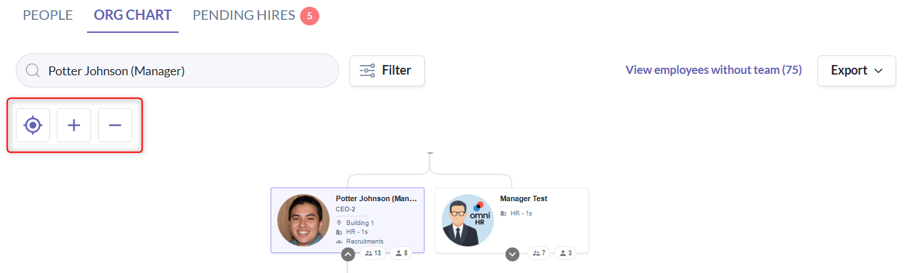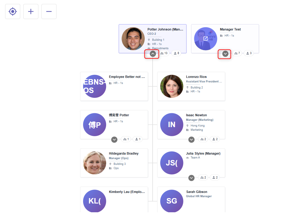 - You can expand or collapse employee cards to view or hide their direct reports.
